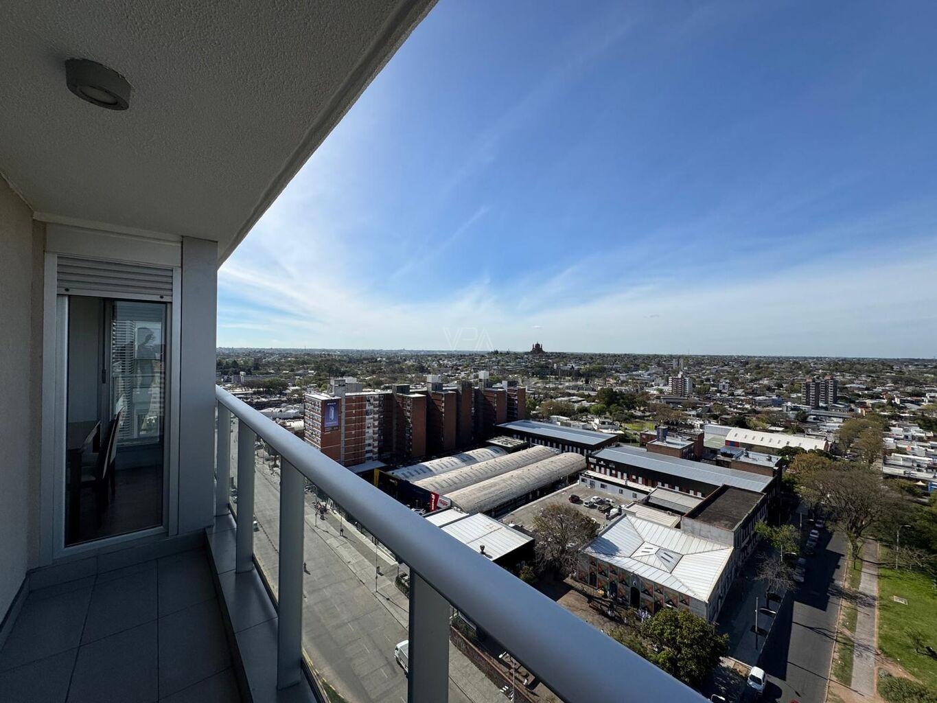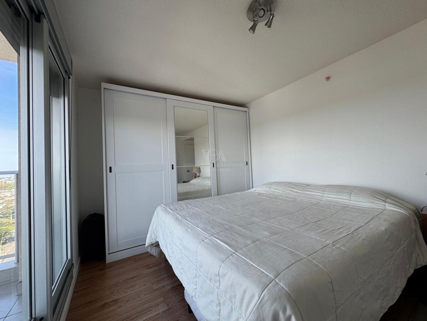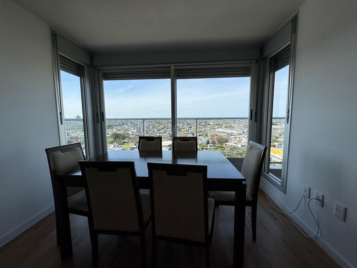 Torre Nuevo Centro, precioso apartamento semi equipado en piso 14 de 2 dormitorios con placares dobles en cada uno, 1 baño con ducha, cocina integrada semi equipada capana, horno empotrado, anaffe de 4 hornallas, aire acondicionado, terraza lavadero con conexión para lavaropas, en excelente estado de mantenimiento, amplios ventanales con balcón frances y terraza en dormitorio principal, muy soleado, vista despejada, imperdible