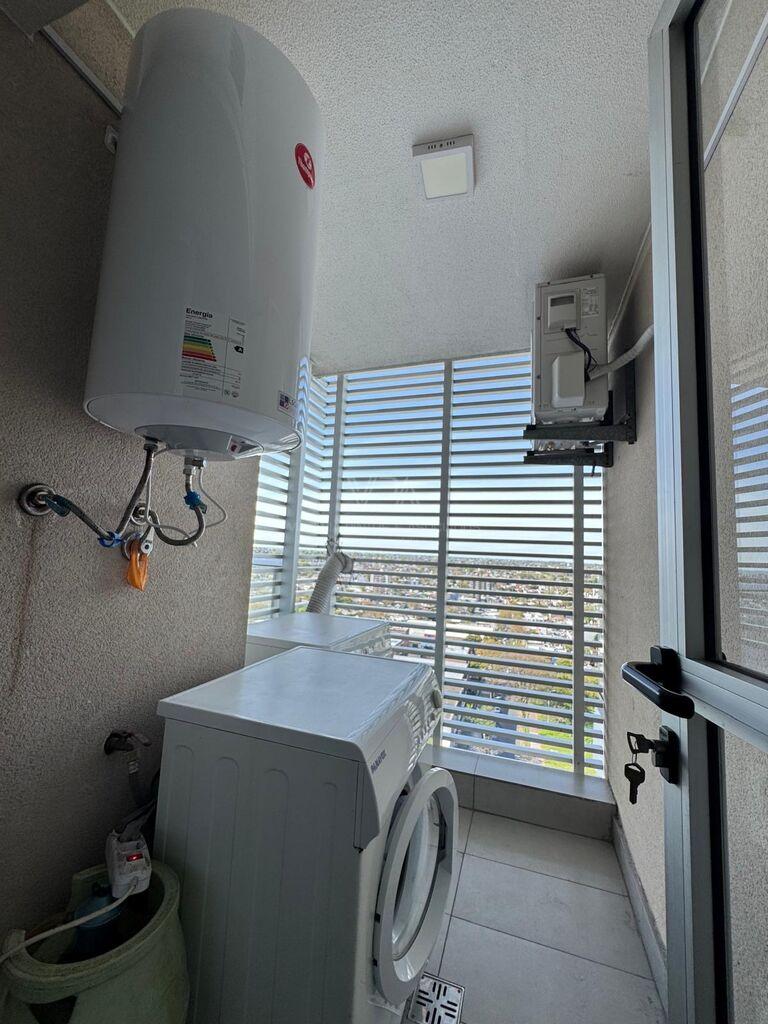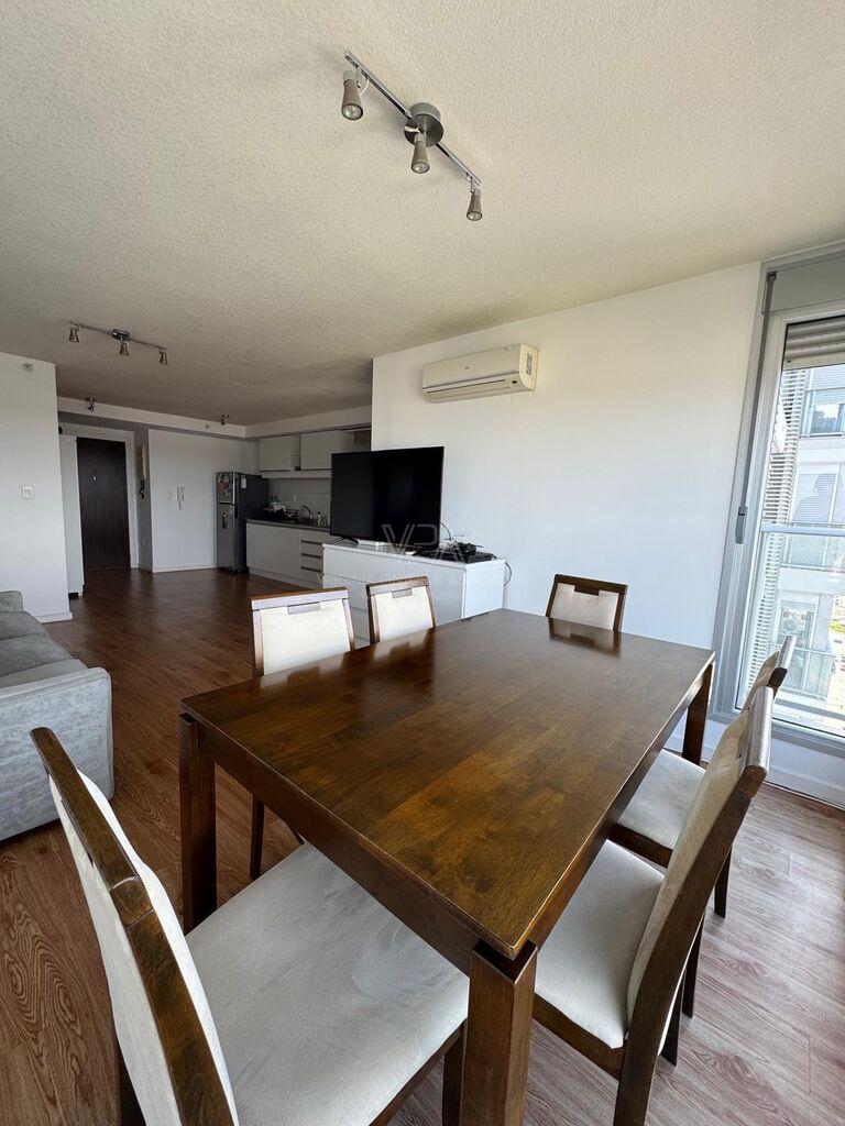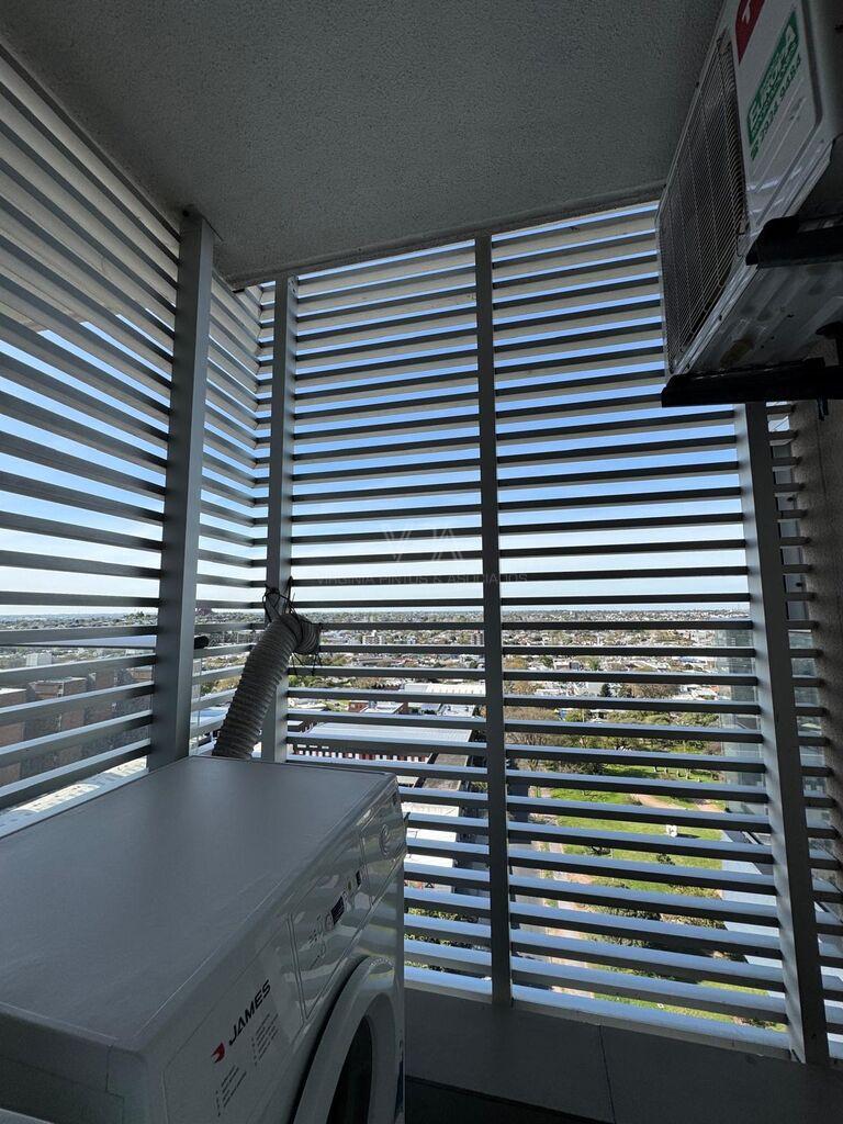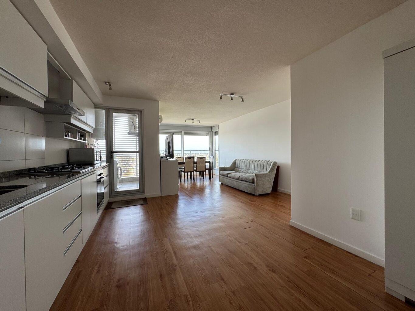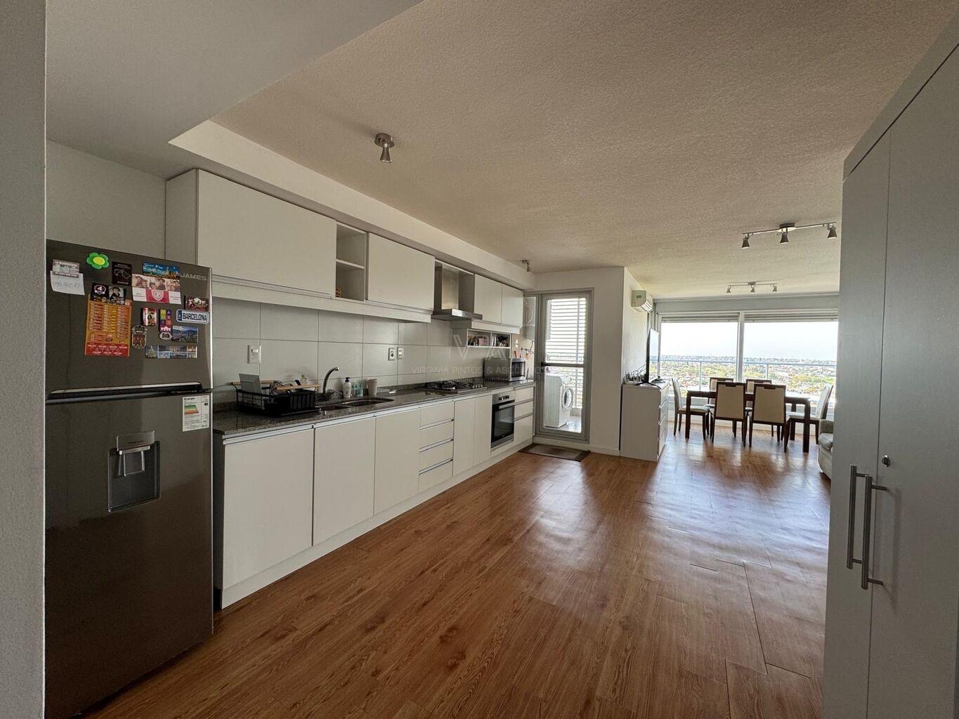 Torre Nuevo Centro, precioso apartamento semi equipado en piso 14 de 2 dormitorios con placares dobles en cada uno, 1 baño con ducha, cocina integrada semi equipada capana, horno empotrado, anaffe de 4 hornallas, aire acondicionado, terraza lavadero con conexión para lavaropas, en excelente estado de mantenimiento, amplios ventanales con balcón frances y terraza en dormitorio principal, muy soleado, vista despejada, imperdible